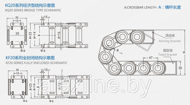 KQ20 - открытый гибкий кабель-канал / KF20 - закрытый гибкий кабель-канал